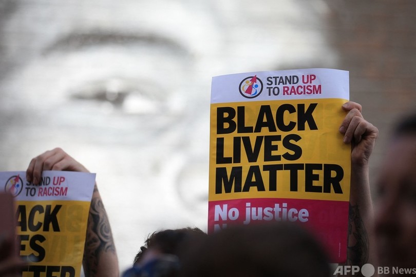 【7月14日 AFP】サッカーイングランド代表のFWマーカス・ラシュフォード(Marcus Rashford)の壁画の前に13日、反人種差別のデモ隊が集結した。