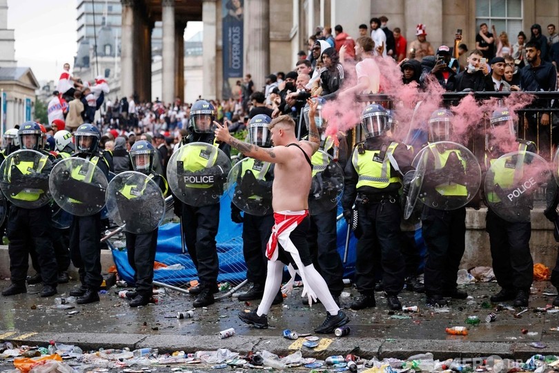 【7月15日 AFP】英ウェンブリー・スタジアム(Wembley Stadium)で行われたサッカー欧州選手権(UEFA Euro 2020)決勝で一部のファンが暴徒化した問題で、英ロンドン警視庁(Metropolitan Police Service)は14日、自らの対応は正当だったと主張し、警察の介入がなければ中止になっていたかもしれないと述べた。