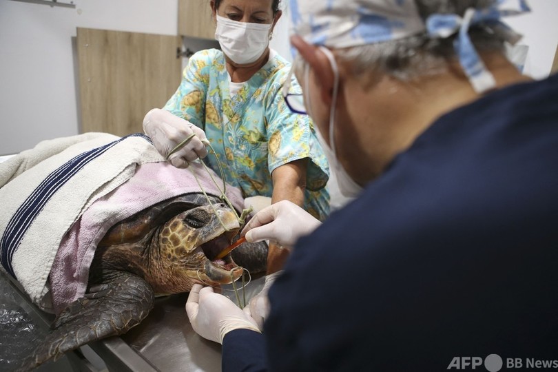 ニュース 環境・科学 今日の1枚 【今日の1枚】ウミガメの食道に釣り針、レントゲンでくっきり 2021年7月24日 12:15 発信地:アジャクシオ/フランス [ フランス ヨーロッパ ] このニュースをシェア ‹ › ❮ 4/4 ❯ フランス・コルシカ島アジャクシオで、ウミガメの食道に入った釣り針の除去手術中に挿管するイタリア人獣医師のアントニオ・ディベッロさん(2021年7月12日撮影)。(c)Pascal POCHARD-CASABIANCA / AFP 画像作成中 ! 【7月24日 AFP】ウミガメの食道に入った釣り針の除去手術の前にレントゲン写真を確認する獣医師。フランス・コルシカ(Corsica)島アジャクシオ(Ajaccio)で。(c)AFP 環境・科学 一覧へ> メディア・報道関係・法人の方向け 写真・動画 購入のお問合せ>