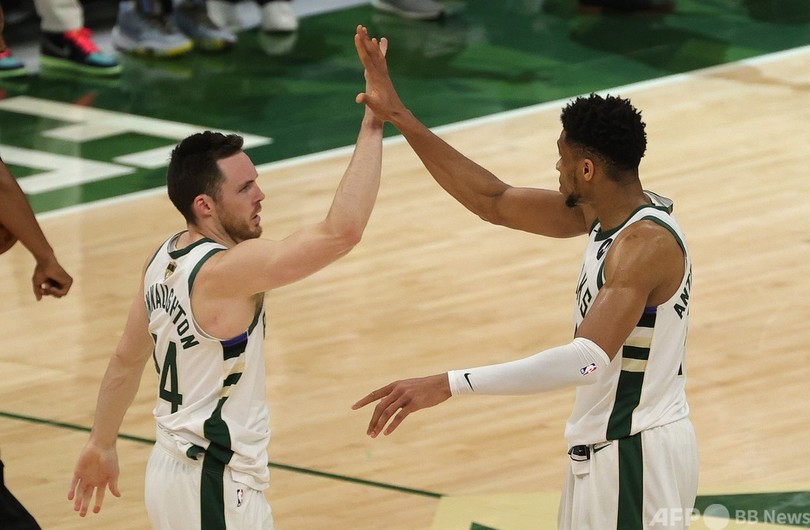 50年ぶりのファイナル制覇を目指すバックスは、クリス・ミドルトン(Khris Middleton)が終盤の重要な場面で10得点を稼ぐなどこの日40得点をマーク。ヤニス・アデトクンポ(Giannis Antetokounmpo)は26得点、14リバウンド、8アシストを記録した。