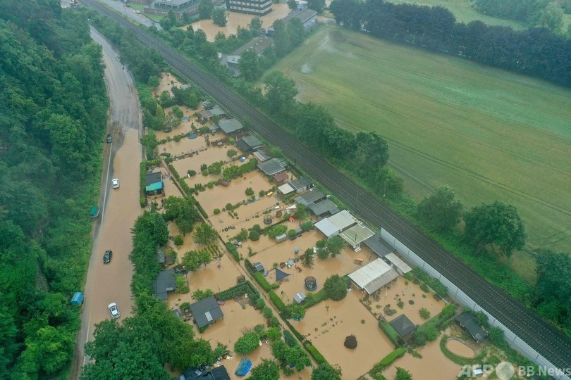 【7月15日 AFP】(更新、写真追加)ドイツ西部で豪雨による洪水が発生し、地方当局は15日、少なくとも19人が死亡し、約50人が行方不明となっていると発表した。川の増水により複数の民家が倒壊した。