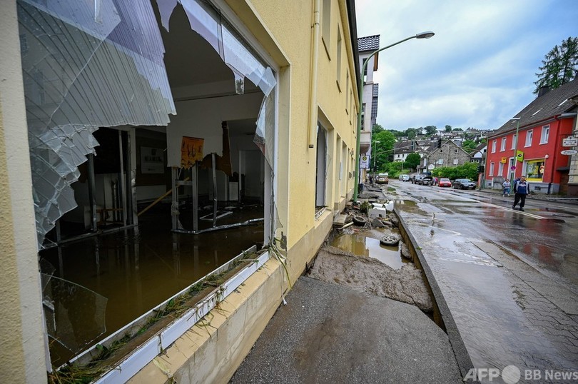【7月15日 AFP】(更新、写真追加)ドイツ西部で豪雨による洪水が発生し、地方当局は15日、少なくとも19人が死亡し、約50人が行方不明となっていると発表した。川の増水により複数の民家が倒壊した。