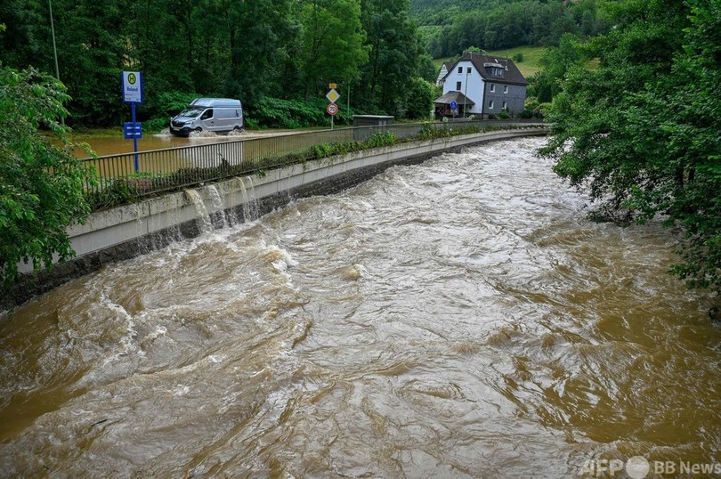 【7月15日 AFP】(更新、写真追加)ドイツ西部で豪雨による洪水が発生し、地方当局は15日、少なくとも19人が死亡し、約50人が行方不明となっていると発表した。川の増水により複数の民家が倒壊した。
