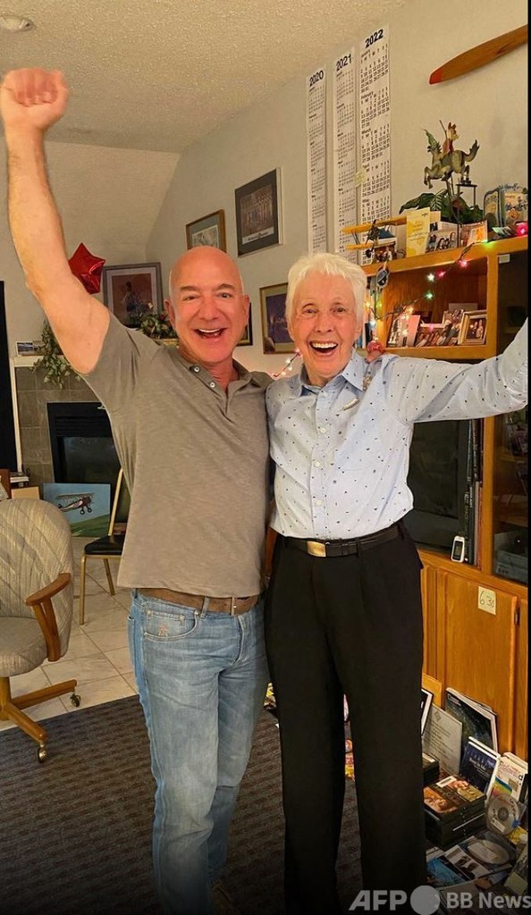 ニュー・シェパードにはベゾス氏とその弟のマーク(Mark Bezos)さんに加え、宇宙飛行を行う史上最高齢の人物となるウォリー・ファンク(Wally Funk)さん(82)も搭乗する。(c)AFP