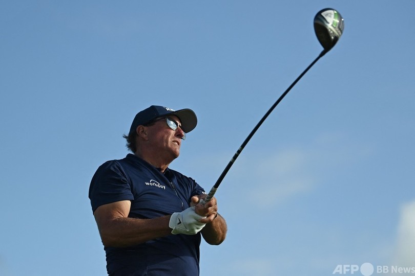 第103回全米プロゴルフ選手権(2021 PGA Championship)でメジャー最年長優勝を果たしてから2か月足らずのフィル・ミケルソン(Phil Mickelson、米国)は、10オーバー「80」の最下位と出遅れた。(c)AFP/Kieran CANNING
