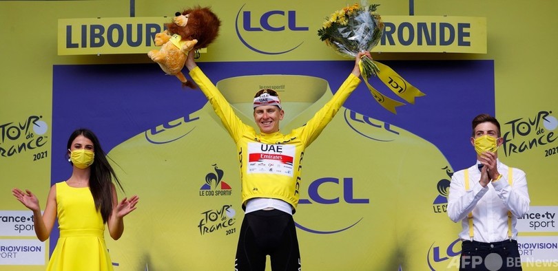 総合争いでは、首位に立つUTE(UAE TEAM EMIRATES)のタデイ・ポガチャル(Tadej Pogacar、スロベニア)がトップから約20分50秒遅れの集団でフィニッシュしたものの、30キロメートルの距離を争う第20ステージの個人タイムトライアルを前に順位に変動はなかった。(c)AFP