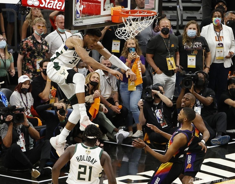 【7月18日 AFP】20-21NBAファイナル(7回戦制)は17日、米アリゾナ州フェニックス(Phoenix)で第5戦が行われ、ミルウォーキー・バックス(Milwaukee Bucks)が123-119でフェニックス・サンズ(Phoenix Suns)に競り勝ち、1971年以来となるファイナル制覇に王手をかけた。