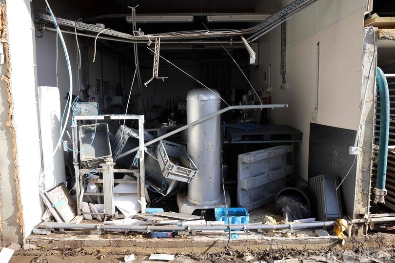 道具や作業台は押し流され、積み重なった。川の水位が通常より1.8メートル上昇したことが、壁に付いた泥水の跡から分かった。