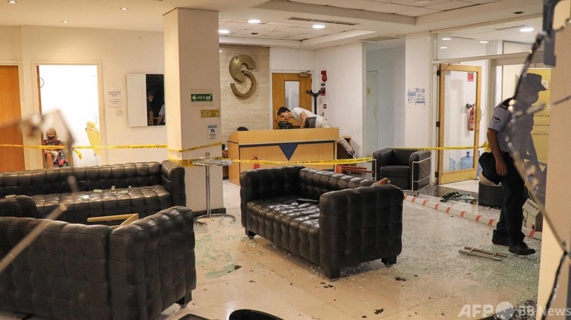 テレビ局関係者がソーシャルメディアに投稿した動画には、警察車両のサイレンが鳴り響く中、駐車場で炎上する車や、備品が破壊された局内のロビーらしき場所が映っている。