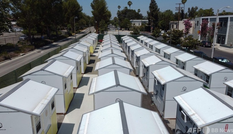 【8月1日 AFP】米カリフォルニア州ロサンゼルス西部の町に、小さなプレハブ住宅が立ち並ぶコミュニティーができた。小さな建物は、「タイニーホーム(tiny homes)」と呼ばれ、ホームレスの人々の生活再建を目的に設置された。ロサンゼルス市のホームレス人口は、東海岸のニューヨーク市に次いで多い。