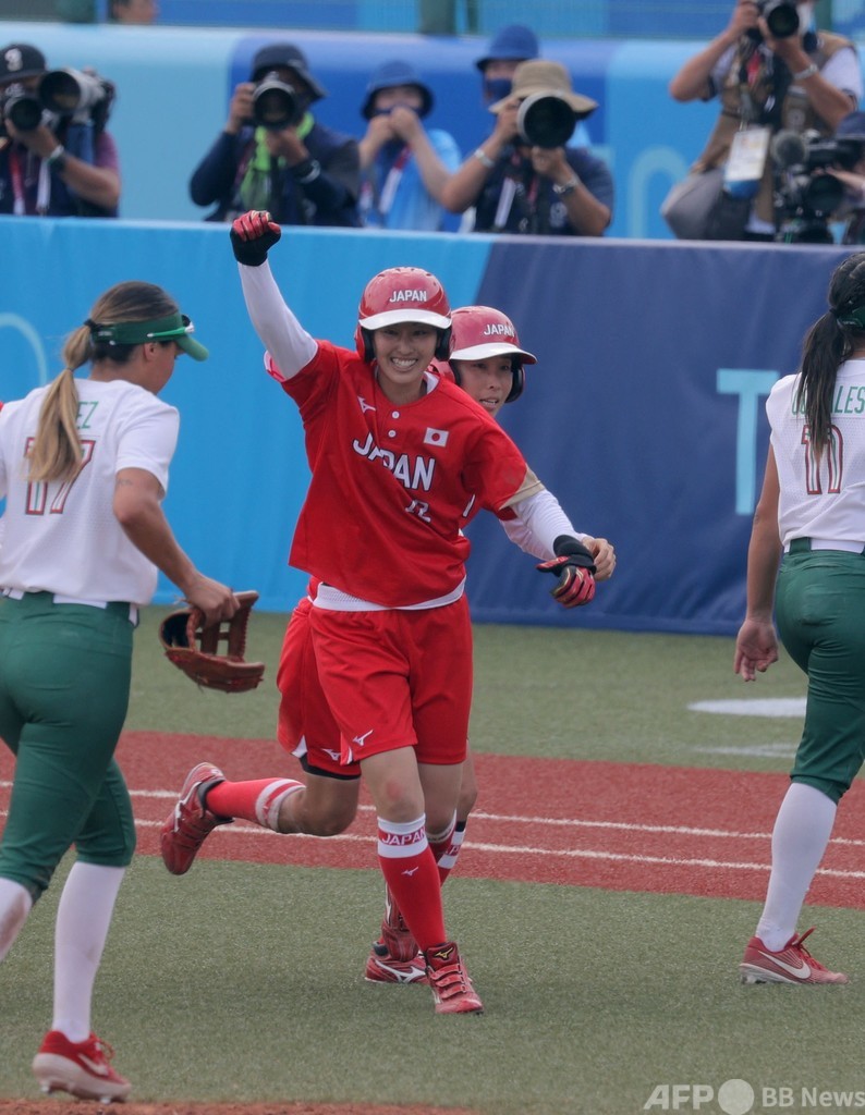 【7月22日 AFPBB News】東京五輪は22日、ソフトボール・オープニングラウンドの試合が行われ、日本は延長8回タイブレークの末、3-2でメキシコに勝利した。日本は前日のオーストラリアとの開幕戦に続き2連勝を飾った。(c)AFPBB News