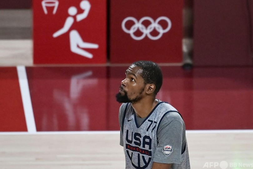 【7月22日 AFP】東京五輪に臨むバスケットボール男子米国代表が22日、大会開幕を控える中、試合会場のさいたまスーパーアリーナ(Saitama Super Arena)でトレーニングを行った。(c)AFP