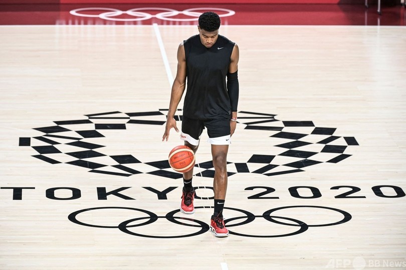 【7月23日 AFP】東京五輪に臨むバスケットボール男子日本代表が22日、大会開幕を控える中、試合会場のさいたまスーパーアリーナ(Saitama Super Arena)でトレーニングを行った。(c)AFP