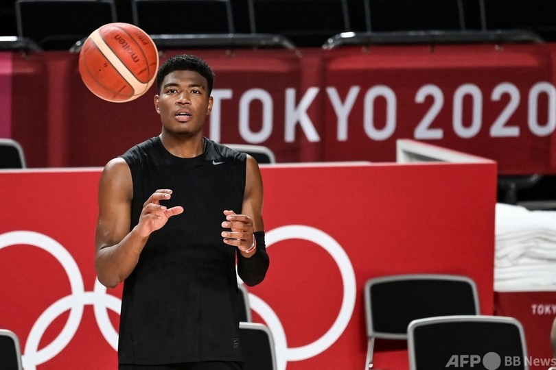 【7月23日 AFP】東京五輪に臨むバスケットボール男子日本代表が22日、大会開幕を控える中、試合会場のさいたまスーパーアリーナ(Saitama Super Arena)でトレーニングを行った。(c)AFP
