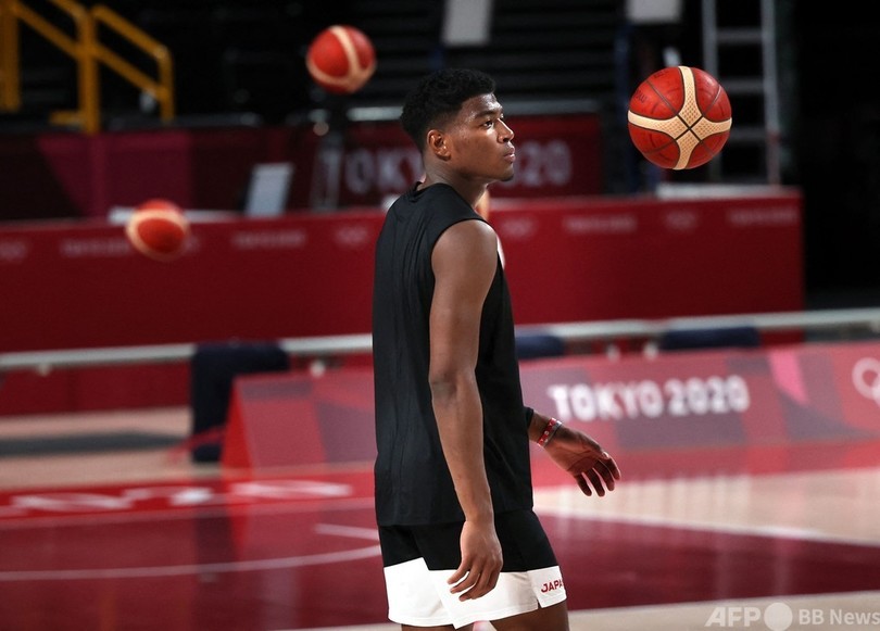 【7月23日 AFP】東京五輪に臨むバスケットボール男子日本代表が22日、大会開幕を控える中、試合会場のさいたまスーパーアリーナ(Saitama Super Arena)でトレーニングを行った。(c)AFP
