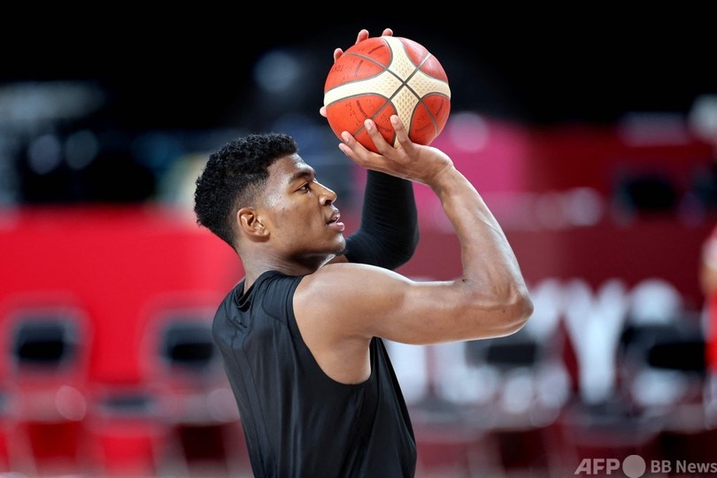 【7月23日 AFP】東京五輪に臨むバスケットボール男子日本代表が22日、大会開幕を控える中、試合会場のさいたまスーパーアリーナ(Saitama Super Arena)でトレーニングを行った。(c)AFP