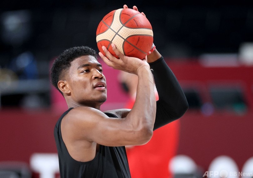 【7月23日 AFP】東京五輪に臨むバスケットボール男子日本代表が22日、大会開幕を控える中、試合会場のさいたまスーパーアリーナ(Saitama Super Arena)でトレーニングを行った。(c)AFP