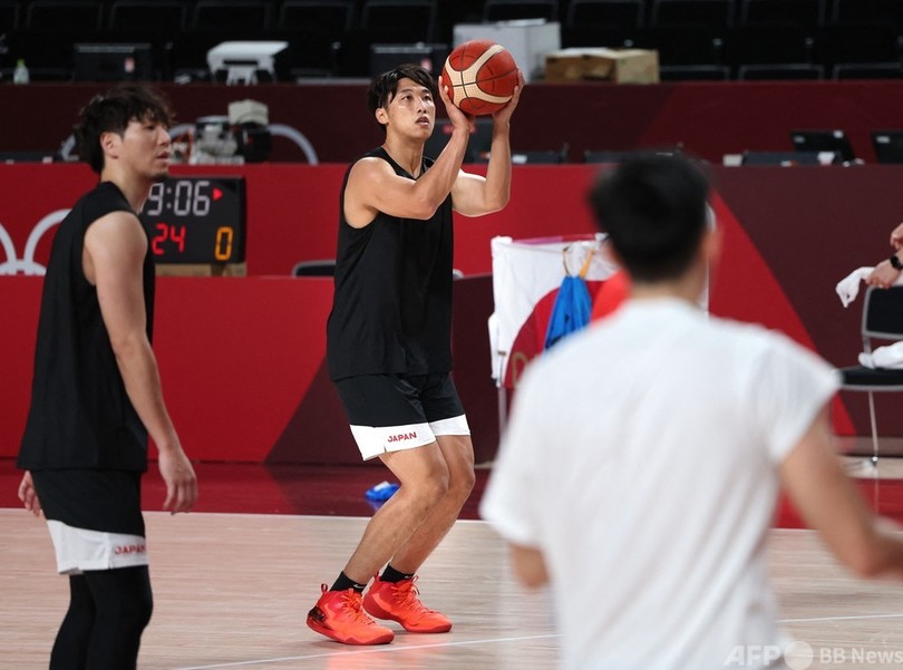 【7月23日 AFP】東京五輪に臨むバスケットボール男子日本代表が22日、大会開幕を控える中、試合会場のさいたまスーパーアリーナ(Saitama Super Arena)でトレーニングを行った。(c)AFP