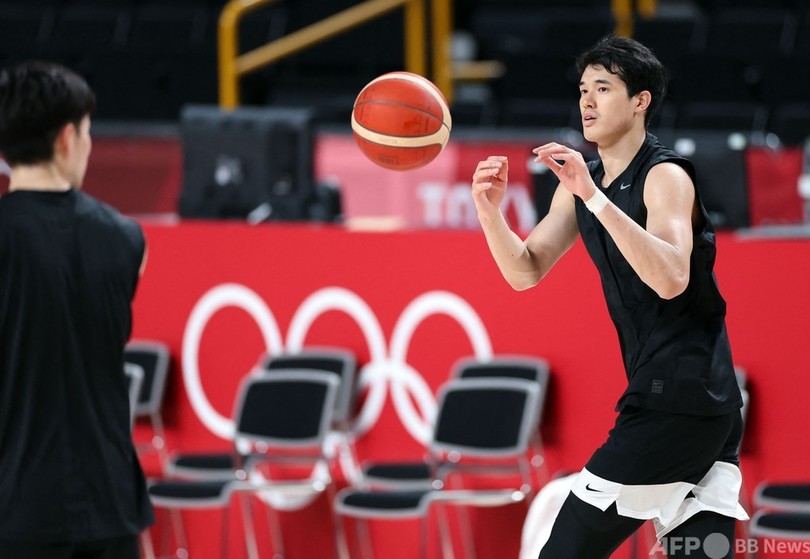【7月23日 AFP】東京五輪に臨むバスケットボール男子日本代表が22日、大会開幕を控える中、試合会場のさいたまスーパーアリーナ(Saitama Super Arena)でトレーニングを行った。(c)AFP