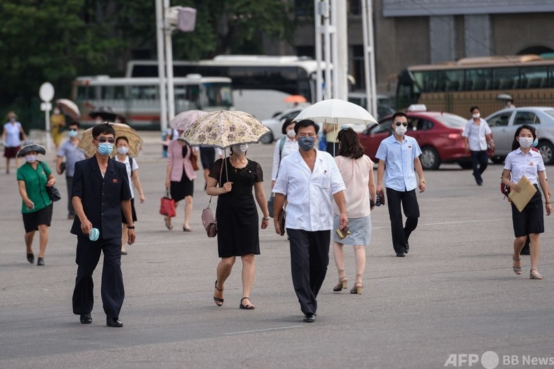 平壌のメインストリートでは21日、日傘を差したりハンディーファンを使ったり、かき氷を食べたりして暑さをしのぐ人が見られた。