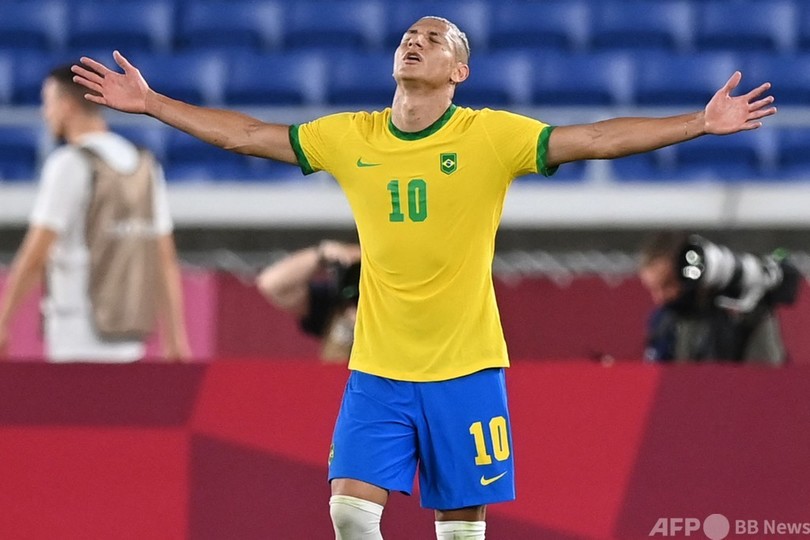 前回のリオデジャネイロ五輪で悲願の初優勝を飾ったグループDのブラジルは、リシャルリソン(Richarlison)の前半のハットトリックなどでドイツを4-2で破った。