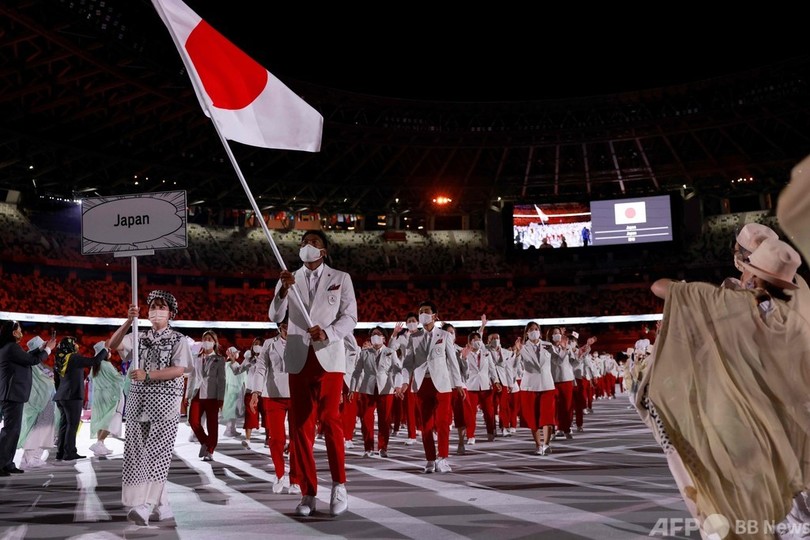 スポーツ スポーツ その他 特集:東京五輪2020 日本人選手 東京五輪:一般ニュース 東京五輪開会式、入場行進する日本選手団 2021年7月23日 23:11 発信地:東京 [ 日本 アジア・オセアニア ] このニュースをシェア ‹ › ❮ 12/14 ❯ 国立競技場で開催された東京五輪の開会式で、旗手の八村塁(中央)を先頭に入場する日本選手団(2021年7月23日撮影)。(c)Odd ANDERSEN / AFP 画像作成中 ! 【7月23日 AFP】東京五輪の開会式が23日、国立競技場(Japan National Stadium)で行われ、日本選手団が入場行進した。(c)AFP 特集:東京五輪2020 8/8に閉幕。日本勢は金メダル27個を含む史上最多となる計58個のメダルを獲得した。 スポーツ その他 一覧へ> メディア・報道関係・法人の方向け 写真・動画 購入のお問合せ>