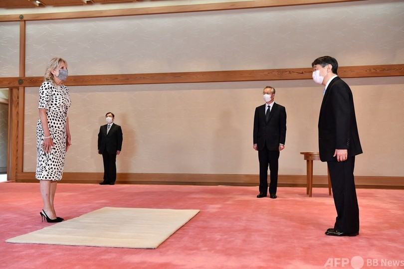 開会式に先立ち、フランスのエマニュエル・マクロン(Emmanuel Macron)大統領、米国のジョー・バイデン(Joe Biden)大統領の妻のジル(Jill Biden)氏、ポーランドのアンジェイ・ドゥダ(Andrzej Duda)大統領らが都内の皇居に赴き、陛下を表敬訪問した。(c)AFP