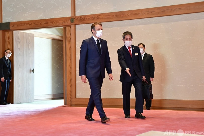開会式に先立ち、フランスのエマニュエル・マクロン(Emmanuel Macron)大統領、米国のジョー・バイデン(Joe Biden)大統領の妻のジル(Jill Biden)氏、ポーランドのアンジェイ・ドゥダ(Andrzej Duda)大統領らが都内の皇居に赴き、陛下を表敬訪問した。(c)AFP