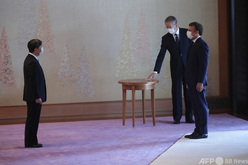 開会式に先立ち、フランスのエマニュエル・マクロン(Emmanuel Macron)大統領、米国のジョー・バイデン(Joe Biden)大統領の妻のジル(Jill Biden)氏、ポーランドのアンジェイ・ドゥダ(Andrzej Duda)大統領らが都内の皇居に赴き、陛下を表敬訪問した。(c)AFP
