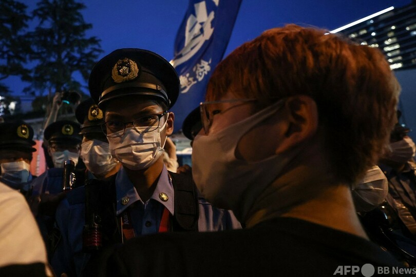 【7月23日 AFP】東京五輪の開会式が行われている国立競技場(Japan National Stadium)の外で23日、大会開催中止を求めるデモが行われ、抗議する人たちの前に多くの警察官が立ちはだかった。