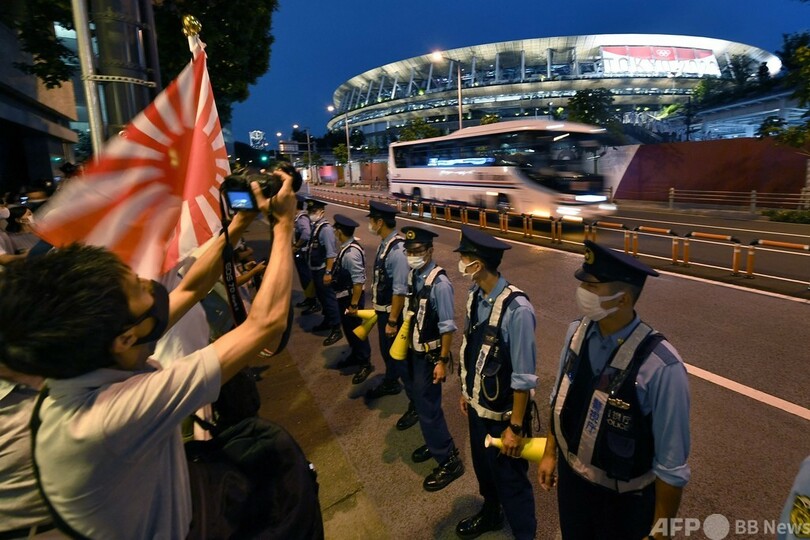 【7月23日 AFP】東京五輪の開会式が行われている国立競技場(Japan National Stadium)の外で23日、大会開催中止を求めるデモが行われ、抗議する人たちの前に多くの警察官が立ちはだかった。