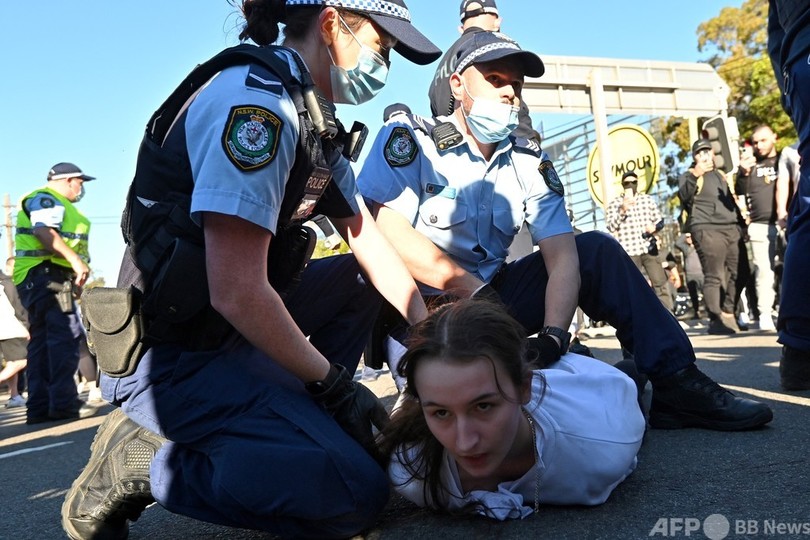 シドニーのデモは公共衛生の規制措置を無視する形で無許可で行われ、数十人が逮捕された。デモは数時間にわたって行われ、デモ隊が警察と衝突する場面もあった。