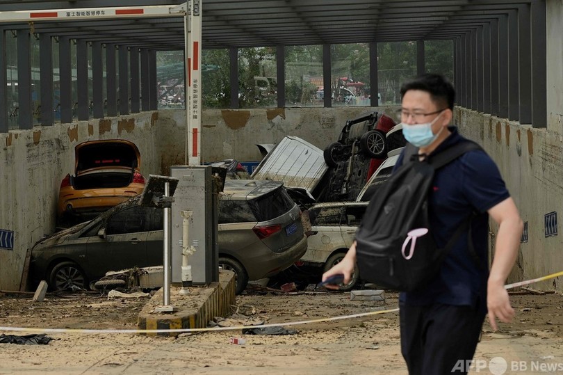 記録的な洪水に見舞われ、少なくとも58人が死亡した中部の河南(Henan)省では、車両やがれきでふさがれた道路の復旧作業が徐々に進められている。