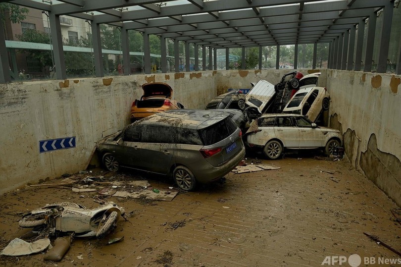 記録的な洪水に見舞われ、少なくとも58人が死亡した中部の河南(Henan)省では、車両やがれきでふさがれた道路の復旧作業が徐々に進められている。
