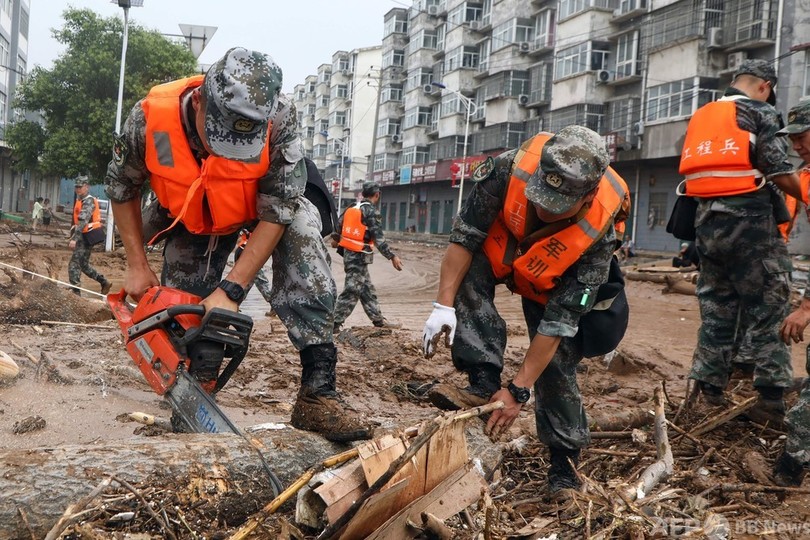 【7月25日 AFP】中国で24日、記録的な豪雨による洪水からの復旧作業が行われる中、台風6号(アジア名:インファ、In-Fa)への備えが進められた。