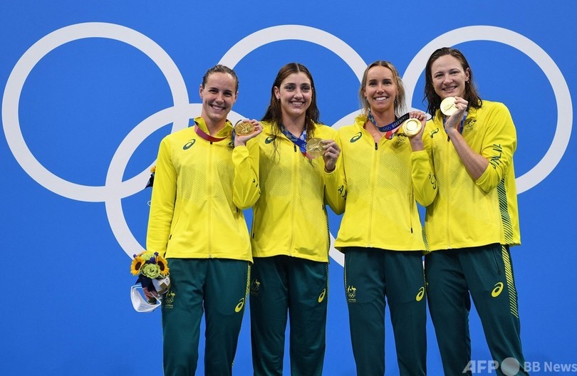 【7月25日 AFP】東京五輪は25日、競泳女子4×100メートルリレー決勝が行われ、オーストラリアが3分29秒69の世界新記録で金メダルを獲得した。