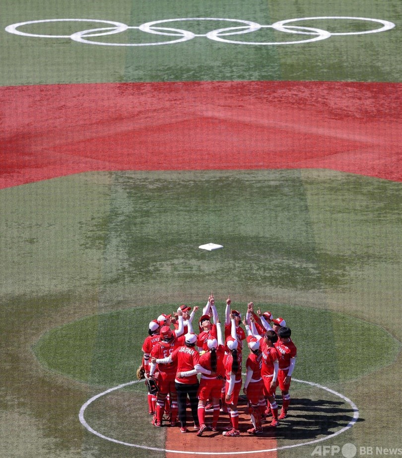 【7月25日 AFPBB News】東京五輪は25日、ソフトボール・オープニングラウンドの試合が行われ、日本はカナダに1-0で勝利した。日本は4連勝で決勝進出を決め、銀メダル以上が確定した。(c)AFPBB News