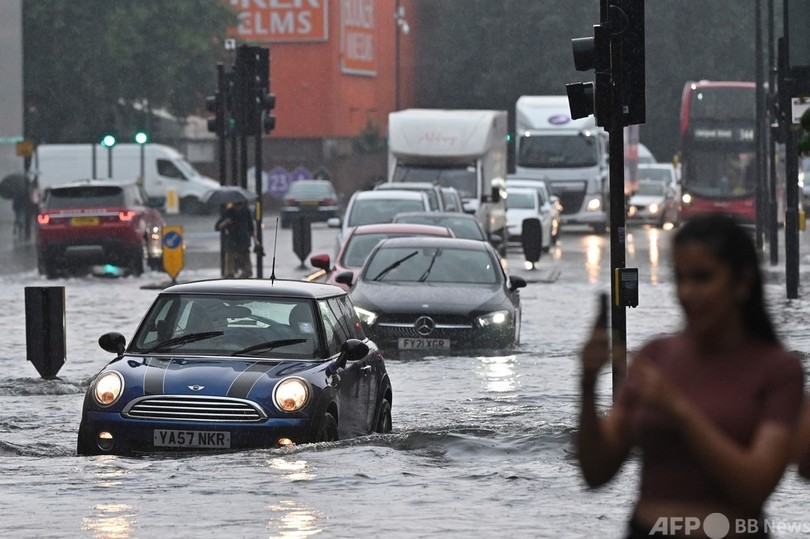 【7月26日 AFP】英ロンドンは25日、豪雨で道路が冠水し、バスや車が立ち往生する事態となった。ロンドンは最近、たびたび雷雨に見舞われている。