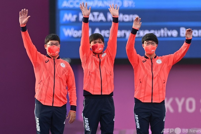 スポーツ スポーツ その他 特集:東京五輪2020 日本人選手 東京五輪:その他 競技 東京五輪:競技 日本がアーチェリー男子団体で銅メダル シュートオフ制す 2021年7月26日 20:12 発信地:東京 このニュースをシェア ‹ › ❮ 2/8 ❯ 東京五輪、アーチェリー男子団体。表彰式で手を振る3位の日本選手(2021年7月26日撮影)。(c)ADEK BERRY / AFP 画像作成中 ! 【7月26日 AFP】東京五輪は26日、アーチェリー男子団体の3位決定戦が行われ、日本は4-4で迎えたオランダとのシュートオフを制し、銅メダルを獲得した。(c)AFP 特集:東京五輪2020 8/8に閉幕。日本勢は金メダル27個を含む史上最多となる計58個のメダルを獲得した。 スポーツ その他 一覧へ> メディア・報道関係・法人の方向け 写真・動画 購入のお問合せ>
