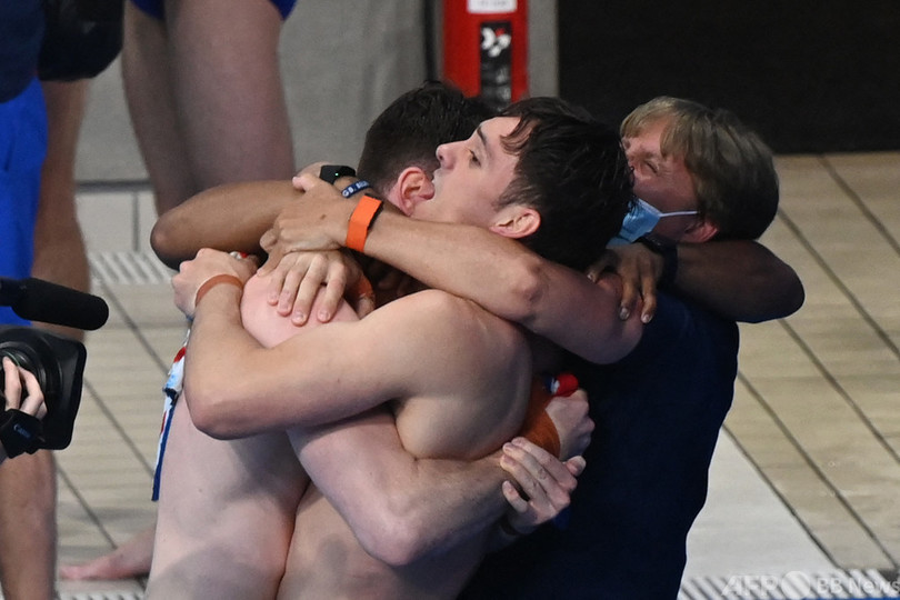 【7月27日 AFP】東京五輪は26日、男子シンクロ高飛び込み決勝が行われ、英国のトム・デイリー(Tom Daley)/マティ・リー(Matty Lee)組が、金メダル有力候補だった中国ペアを僅差で抑え優勝した。「飛び込み王子」として知られるデイリーは悲願の金メダル獲得を受け、亡き父への思いを語った。