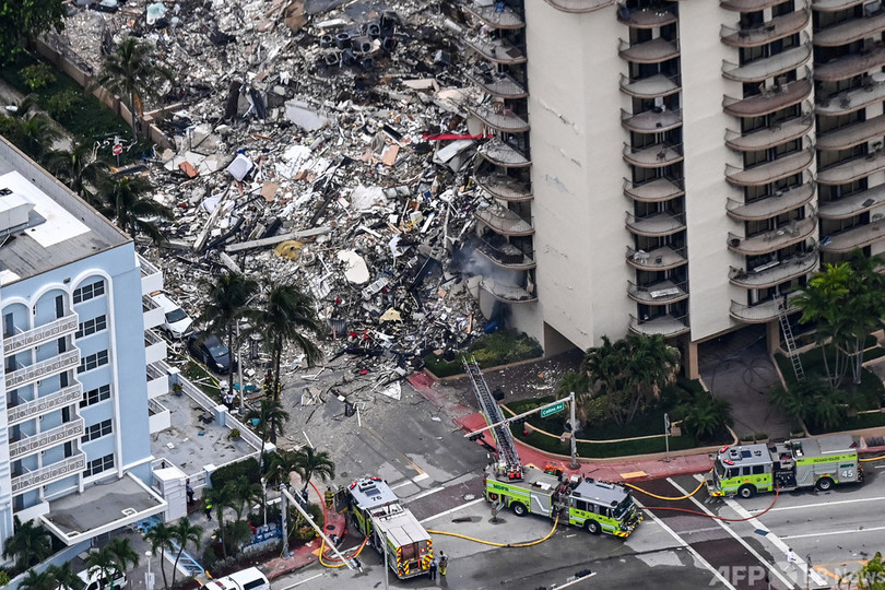 マイアミビーチ(Miami Beach)の北に位置するサーフサイドにあった12階建て集合住宅「チャンプレイン・タワーズ・サウス(Champlain Towers South)」は、先月24日未明に一部が崩落した。