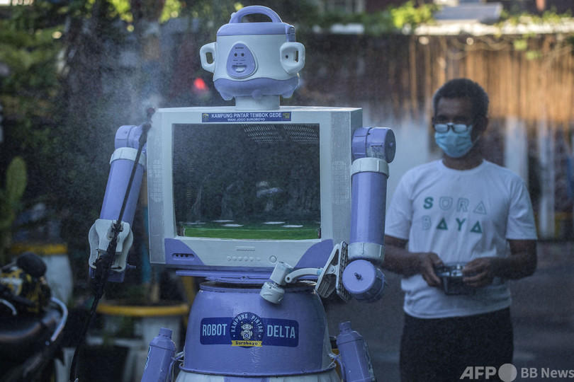 ニュース ライフ こぼれ話 除菌ロボット「デルタ」 家電を再利用して製作 インドネシア 2021年7月29日 12:24 発信地:スラバヤ/インドネシア [ インドネシア アジア・オセアニア ] このニュースをシェア ‹ › ❮ 2/4 ❯ 家電を再利用した除菌ロボット「デルタ」。操るのは製作した地元住民。インドネシアのスラバヤで(2021年7月28日撮影)。(c)Juni Kriswanto / AFP 画像作成中 ! 【7月29日 AFP】インドネシア第2の都市スラバヤ(Surabaya)の市街地で活躍する除菌ロボット「デルタ」。地元住民が家電を再利用して作り上げた。(c)AFP ライフ 一覧へ> メディア・報道関係・法人の方向け 写真・動画 購入のお問合せ>