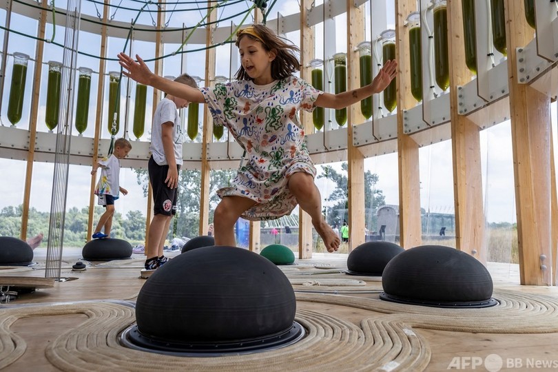 【8月8日 AFP】欧州各国の首都の中で汚染レベルが最悪とされるポーランドのワルシャワ中心部に、クリーンな酸素を出す新しい遊び場「エアバブル(AirBubble)」が出現した。中では、藻類が大気汚染の原因となる微粒子や二酸化炭素(CO2)を吸収し、酸素の泡を出している。