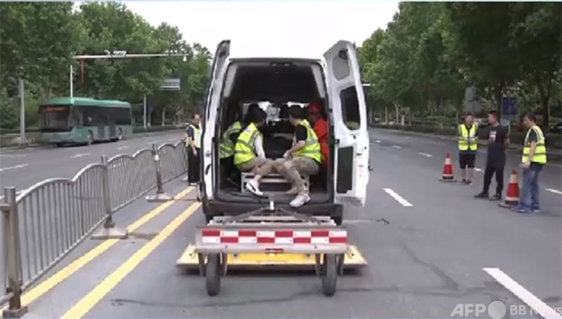 鄭州市内の科学大道と雪松路の交差点付近は、両側8車線の主幹線道路で交通量が非常に多い場所です。周辺の路面は異常がないように見えますが、レーダー探査の結果、深さ80センチの地下空洞があることが分かりました。(c)CGTN Japanese/AFPBB News