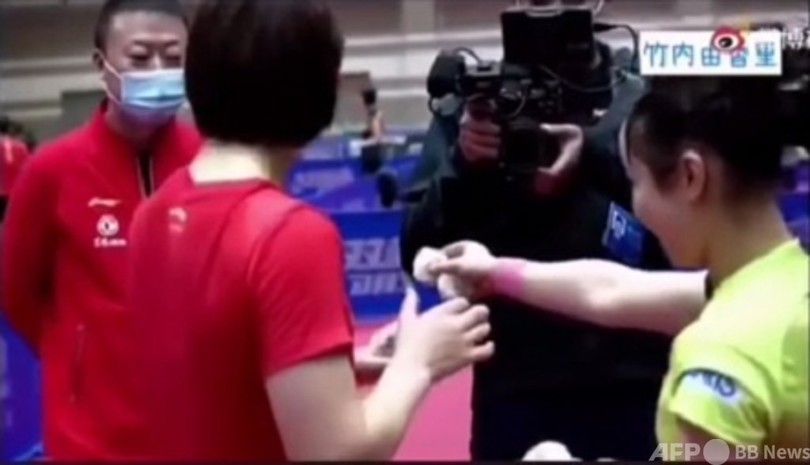 伊藤選手も福原愛(Ai Fukuhara)選手と同じように、中国選手と試合では激しく競い合う一方で、プライベートでは盛んに交流しています。伊藤選手は中国の馬琳(Ma Lin)コーチが日本語を交えて交流してくれることに、親しみを強く感じたとのことです。今回の東京五輪でも中国人選手と親しく交流をしています。試合の合間には、孫穎莎選手と筋肉を比べたり、母親の手作りのおにぎりを陳夢選手と馬琳コーチに分けたりもしました。(c)CGTN Japanese/AFPBB News
