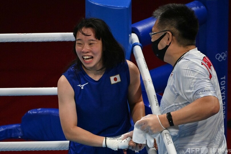 【7月31日 AFPBB News】東京五輪は31日、ボクシング女子フェザー級準決勝が行われ、入江聖奈(Sena Irie)が判定でカリス・アーティングストール(Karriss Artingstall、英国)に勝利し、決勝に進出した。(c)AFPBB News
