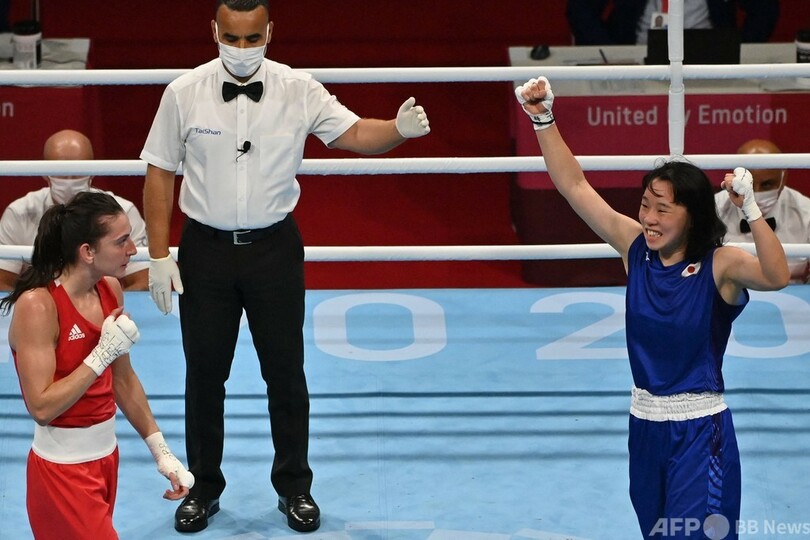 【7月31日 AFPBB News】東京五輪は31日、ボクシング女子フェザー級準決勝が行われ、入江聖奈(Sena Irie)が判定でカリス・アーティングストール(Karriss Artingstall、英国)に勝利し、決勝に進出した。(c)AFPBB News