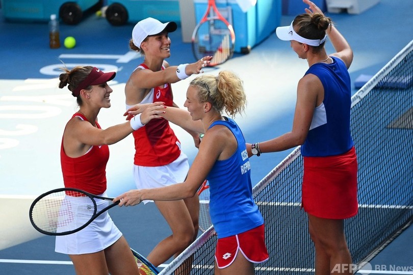 【8月1日 AFP】東京五輪は1日、テニス女子ダブルス決勝が行われ、チェコの大会第1シード、バルボラ・クレイチコバ(Barbora Krejcikova)/カテリーナ・シニアコバ(Katerina Siniakova)組はスイスのベリンダ・ベンチッチ(Belinda Bencic)/ヴィクトリヤ・ゴルビッチ(Viktorija Golubic)組を7-5、6-1で下し、金メダルを獲得した。