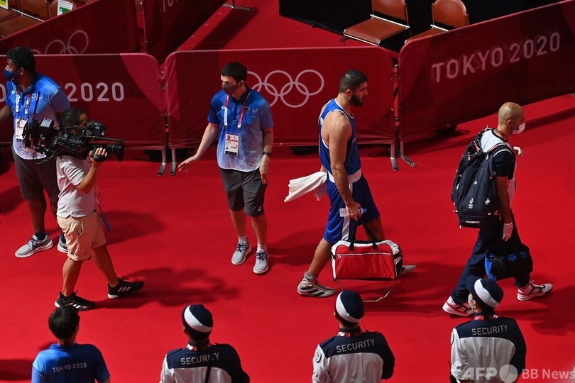 【8月1日 AFP】1日に行われた東京五輪、ボクシング男子スーパーヘビー級準々決勝の試合で、失格になったフランスの選手が「不当」な判定に抗議し、リングサイドで座り込んだ。
