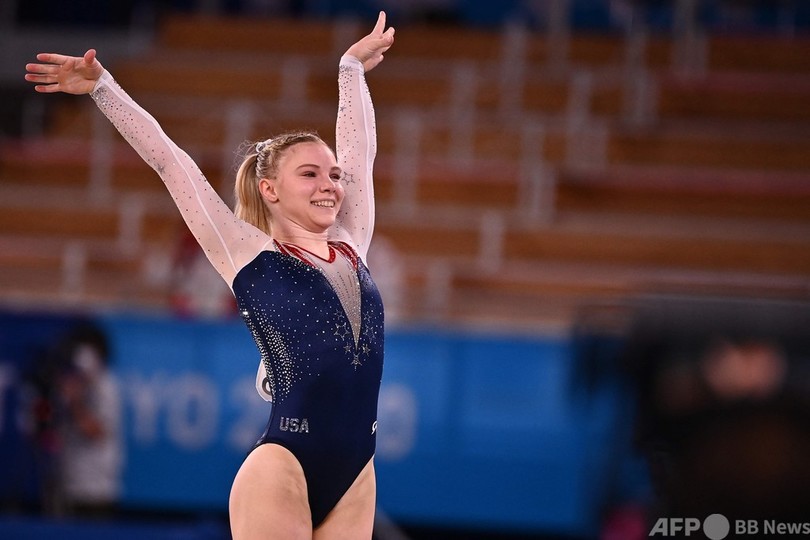 米国の21歳ジェイド・キャリー(Jade Carey)が14.366点をマークし、金メダルを獲得。前日の跳馬では悔しい結果に終わっていたが、そこから立て直して優雅な演技を披露した。
